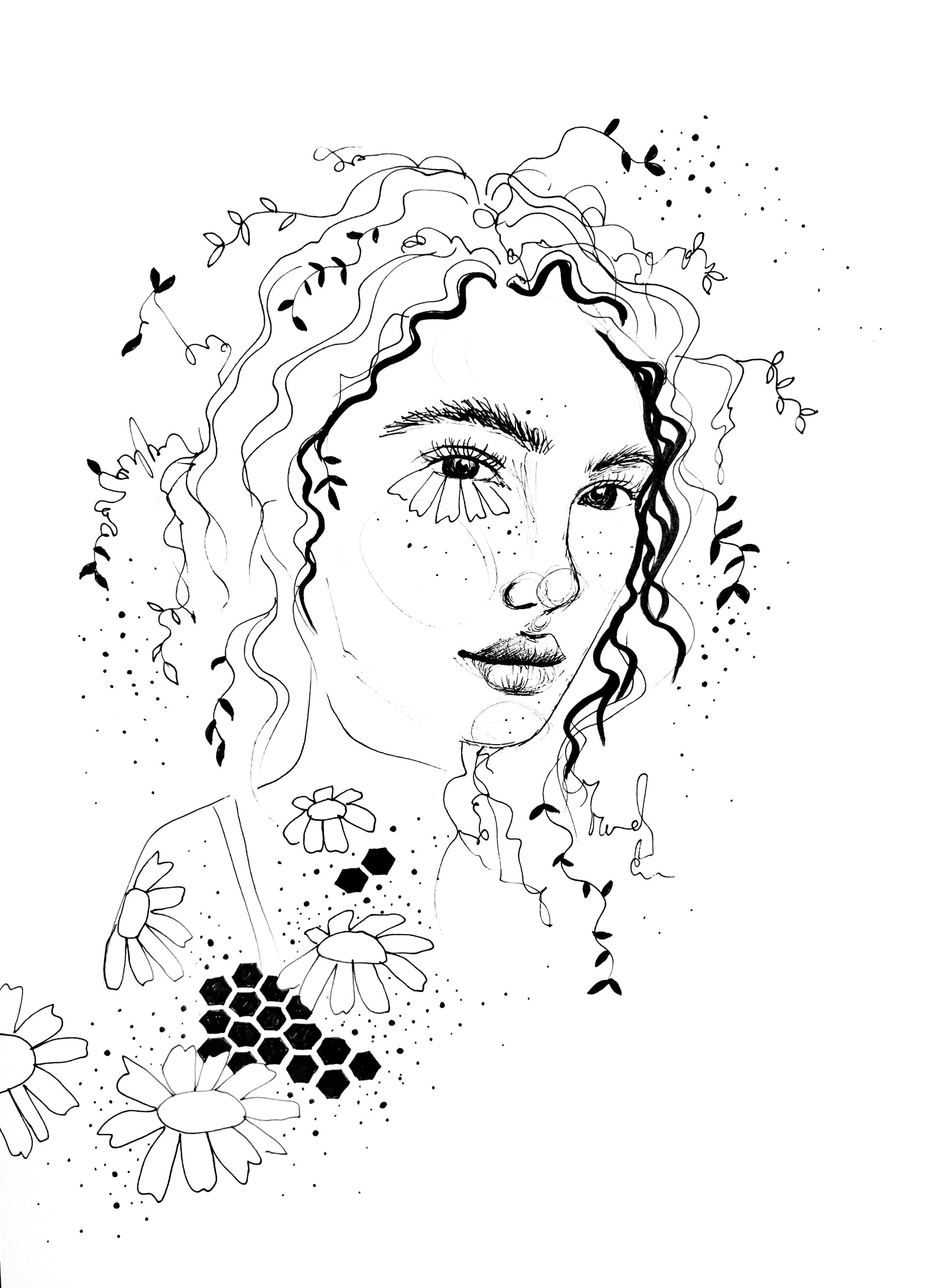 The flowing vines, delicate daisies, and intricate details symbolize the beauty that flourishes when we pour love and care into ourselves. This one-of-a-kind drawing is unframed, offering the perfect opportunity to personalize its display.
