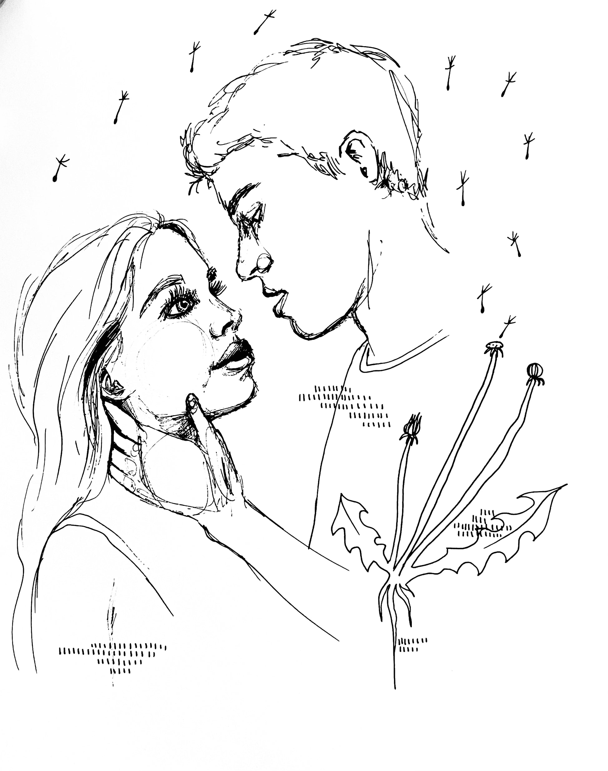 This artwork invites you into a moment of quiet intimacy, where love and dreams converge in a delicate balance. Two figures share an unspoken connection, their closeness surrounded by dandelions—symbols of wishes, hope, and the fleeting nature of time. The floating seeds remind us of the magic of releasing our desires into the universe, trusting that they will take root and bloom in unexpected ways.