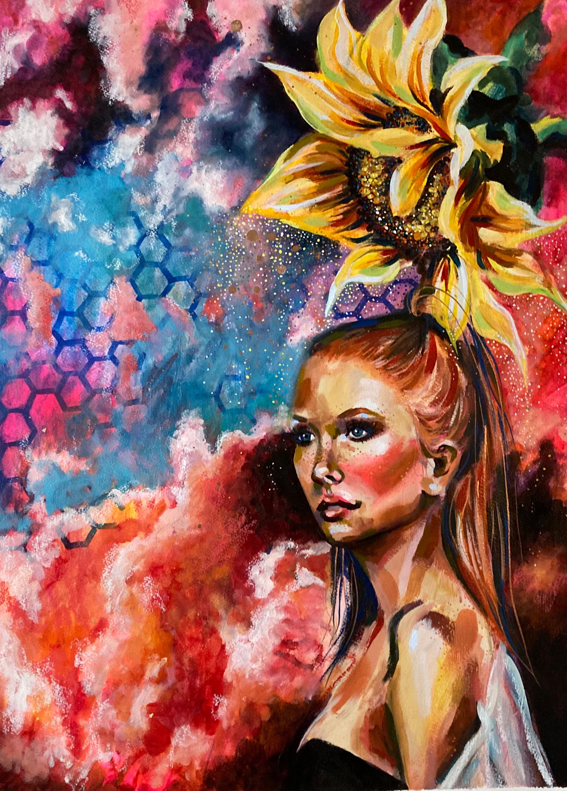 Mixed Media Oils on Archival Paper with Liquid Rose Gold Accents