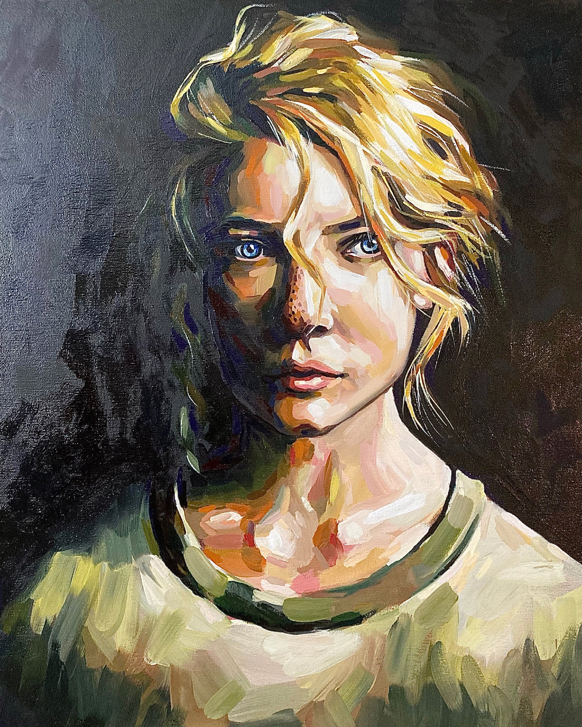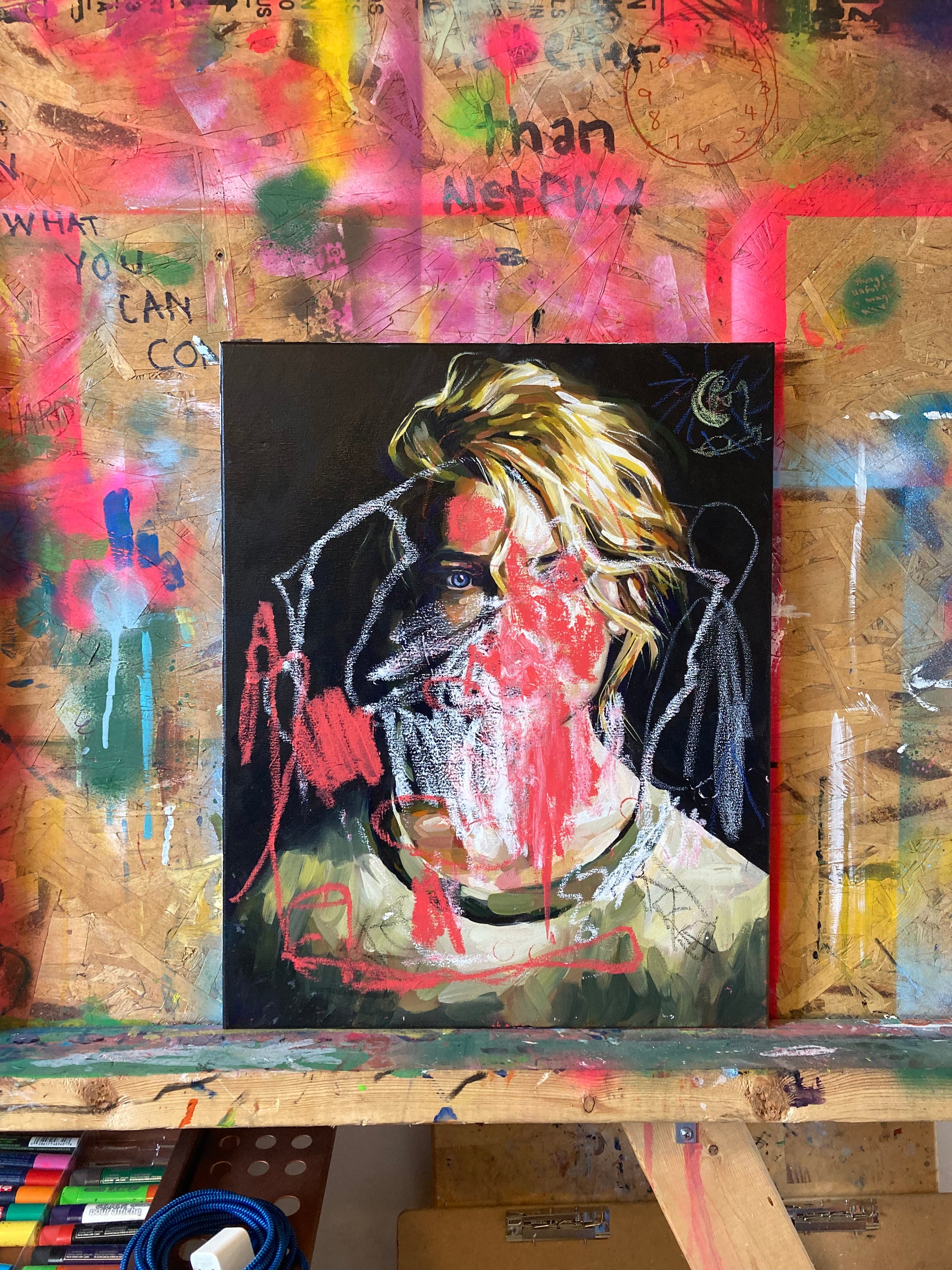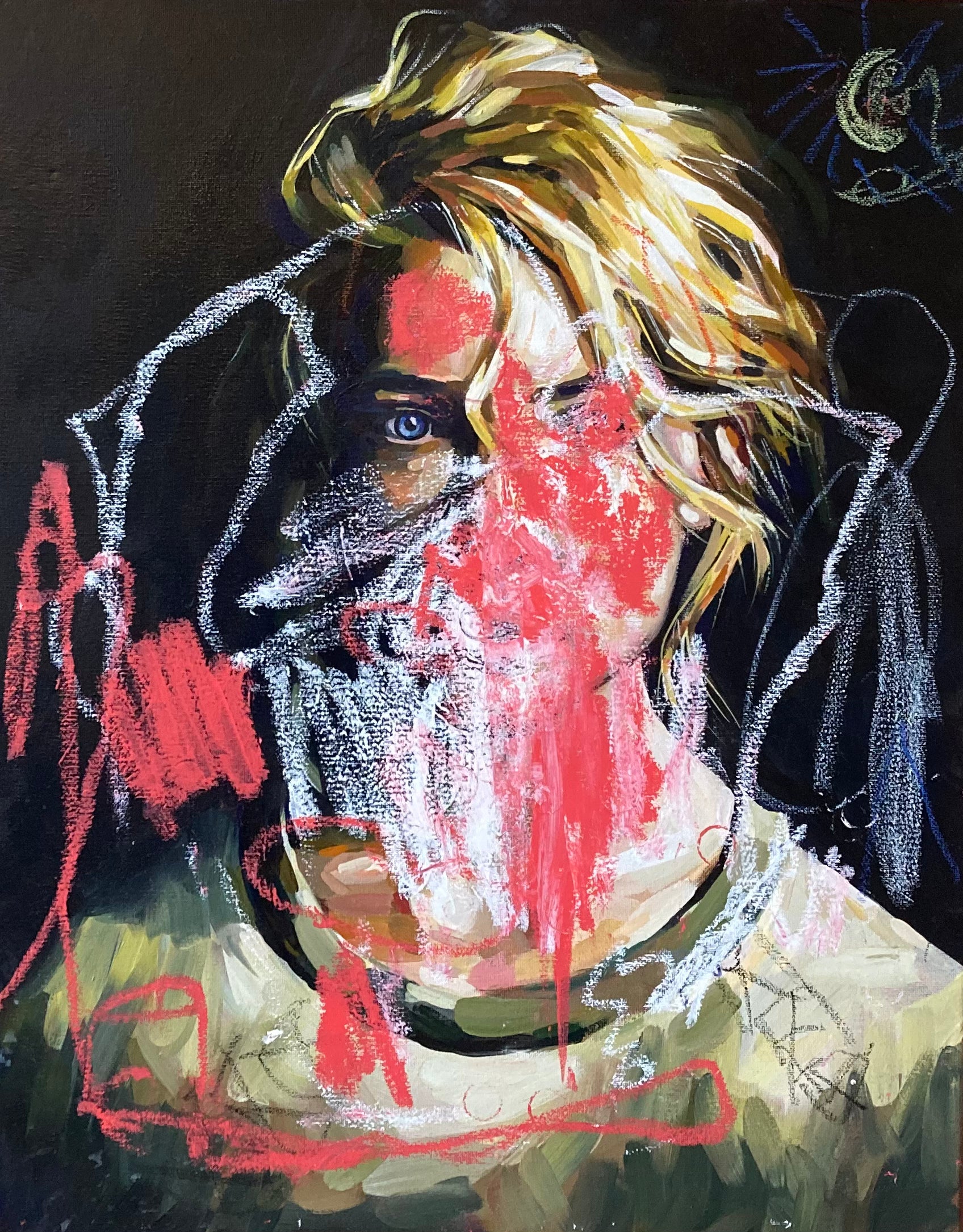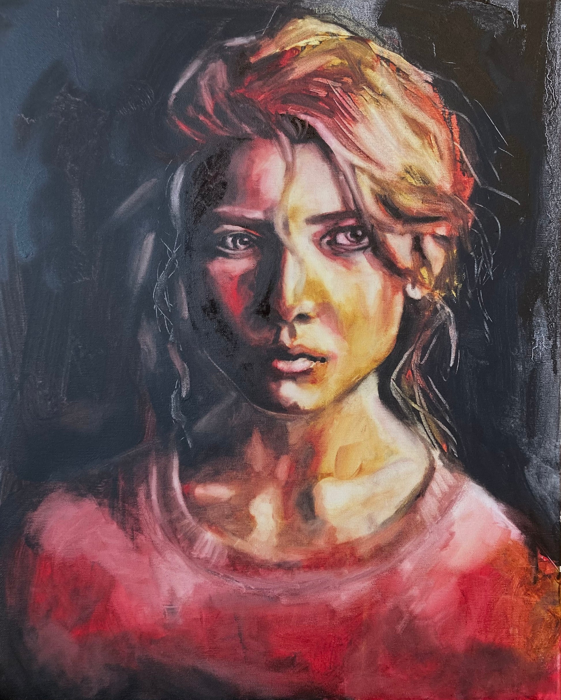 This piece began as a classic oil painting, capturing a serene and introspective moment with expressive brushstrokes and a focus on contrast and depth. In an act of artistic collaboration and freedom, I invited my children to reimagine the piece using vibrant oil sticks, allowing their uninhibited creativity to overlay my structured foundation. The result is a dialogue between control and chaos, discipline and play—a visual exploration of vulnerability and expression.