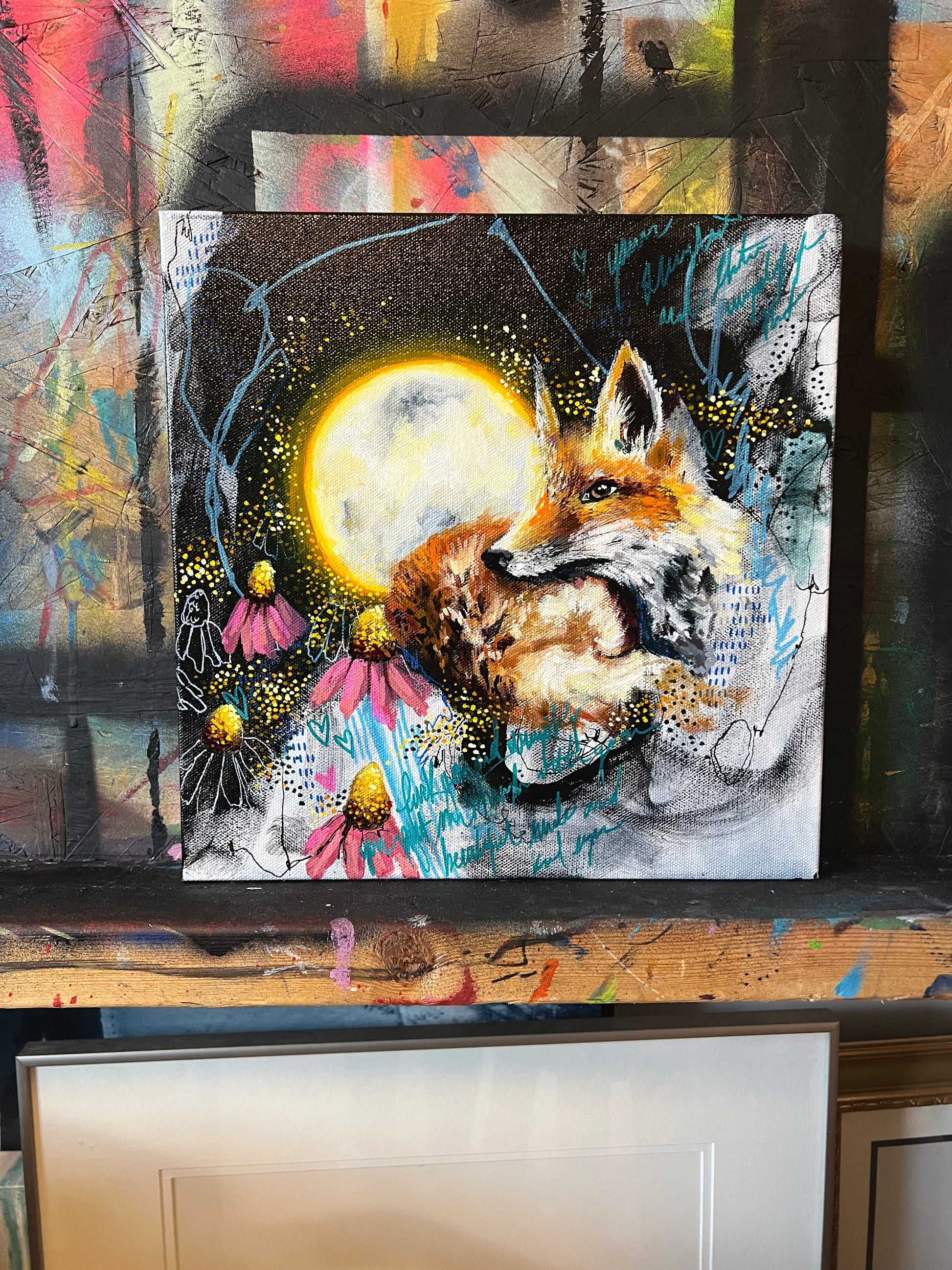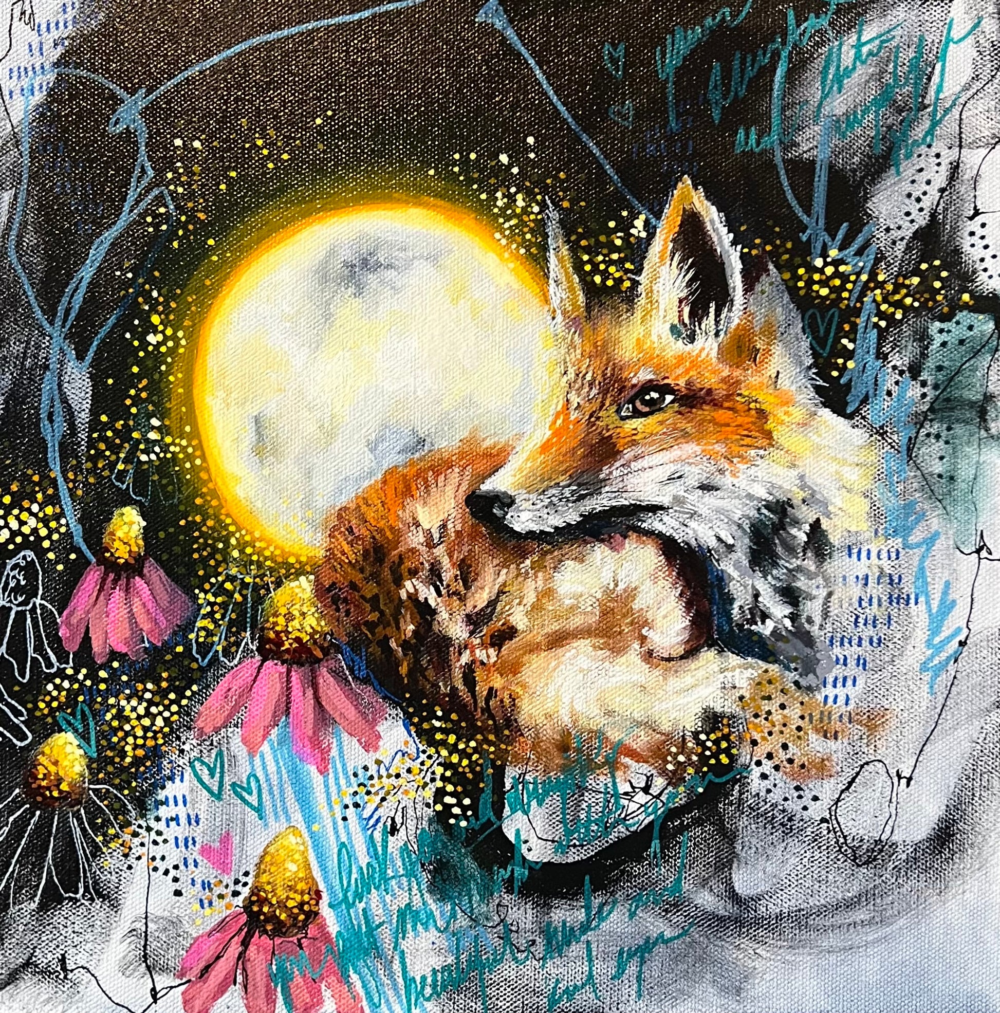 This artwork invites you to pause and connect—not just with the fox’s knowing gaze but with the whispers of your own inner evolution. It reminds us that even in life’s quiet shifts, there is profound magic to be found.