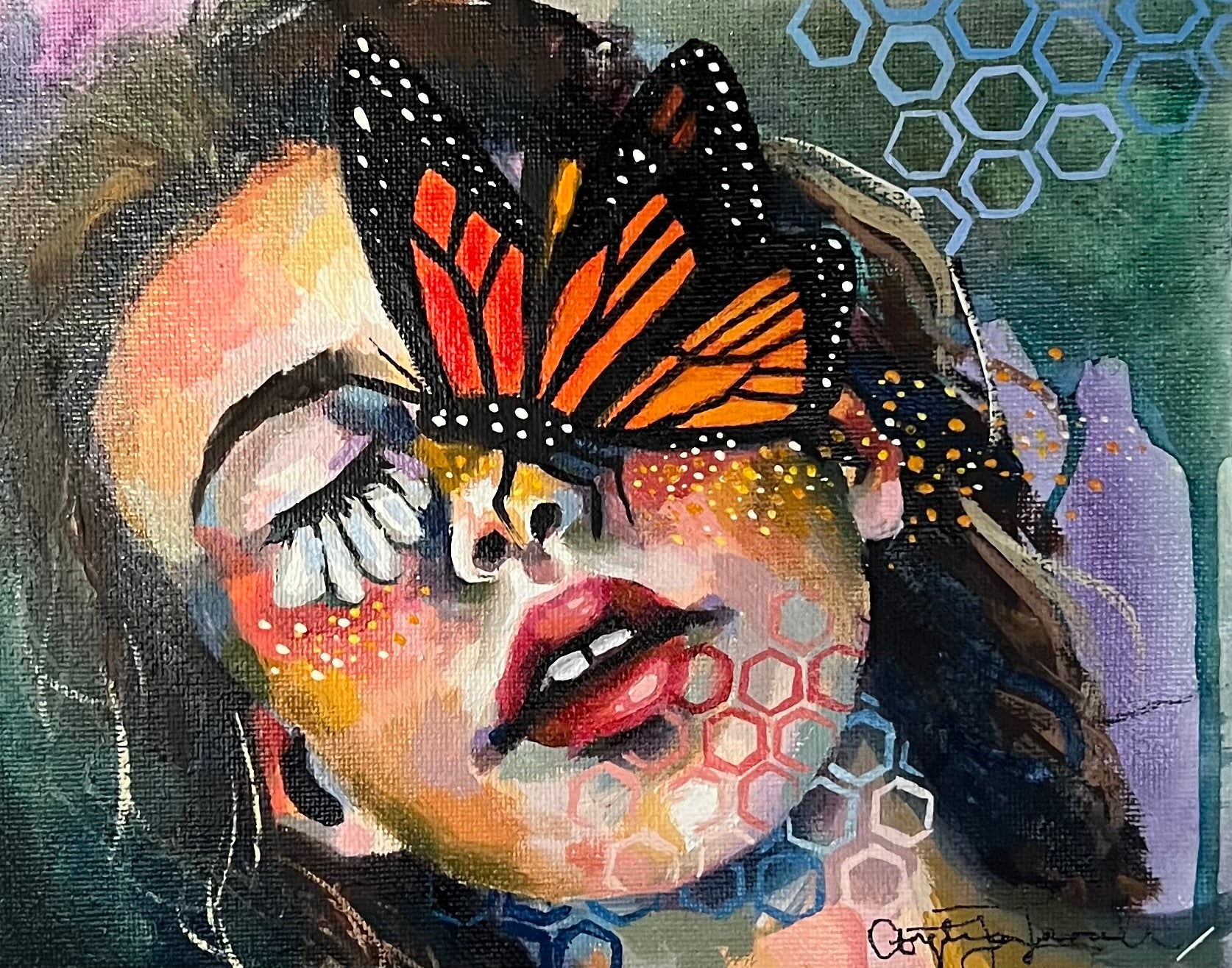 This piece captures the tender moment between transformation and surrender. The hexagon pattern etched into her skin symbolizes the structure, discipline, and hard work that has long been second nature. But here, transformation asks nothing of her. It arrives softly. Effortlessly.